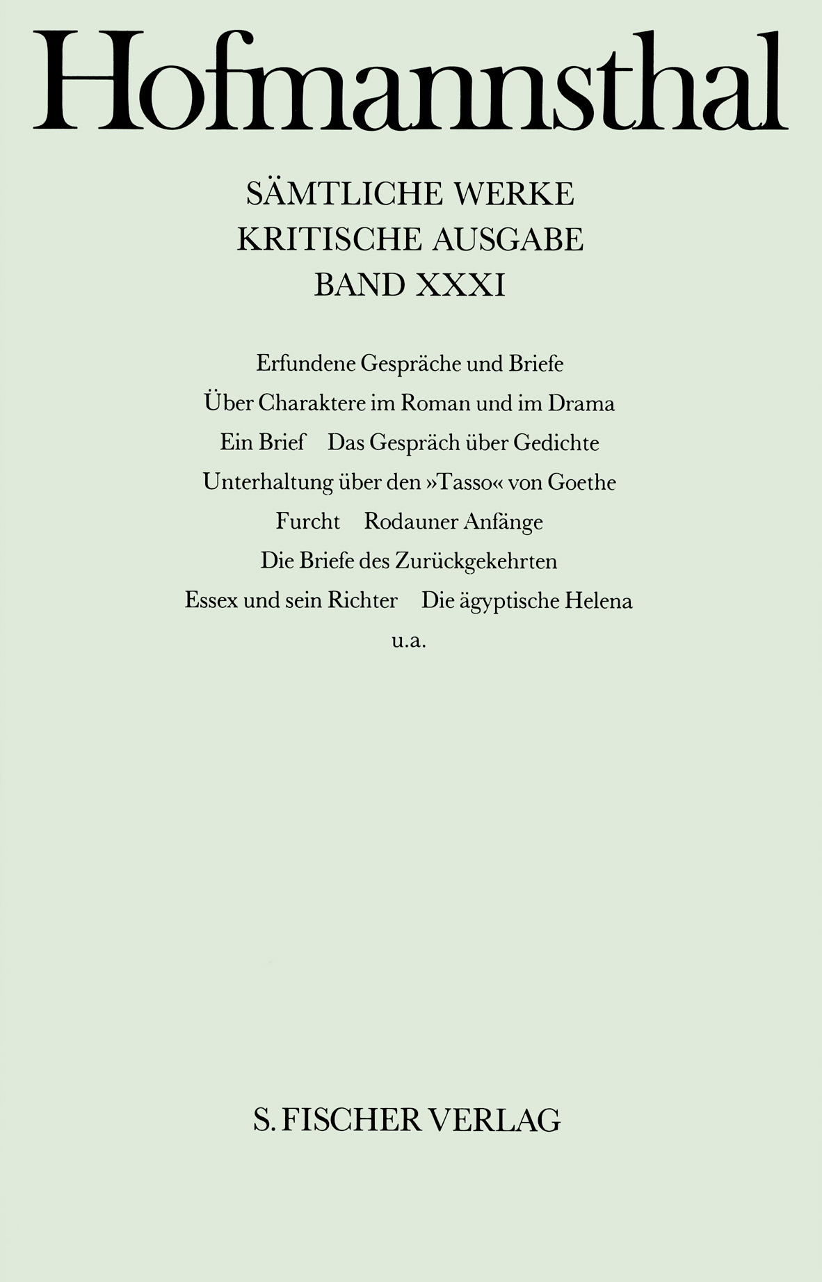 Hugo von Hofmannsthal: Sämtliche Werke. Kritische Ausgabe in 40 Bänden (42 Teilbänden), Band 31